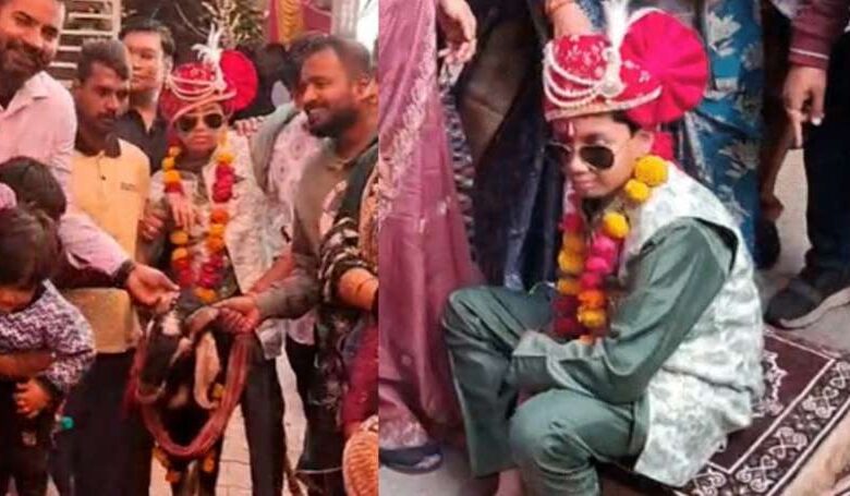 मध्यप्रदेश के टीकमगढ़ के एक गांव में शादी की अनोखी परंपरा है। यहां 12 साल के बच्चे की घोड़ी की जगह बकरे पर बैठाकर बारात निकाली जाती है। शादी से पहले पूरे गांव में बारात घूमती है। खास बात ये है कि बच्चे की शादी उसी की भाभी से होती है।