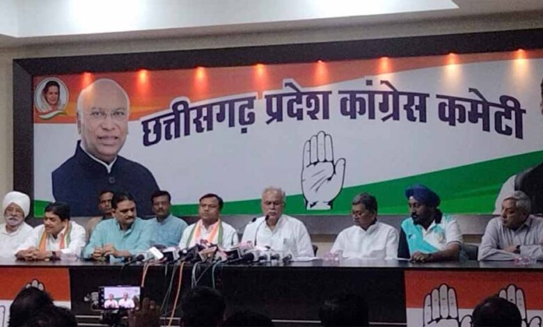 महादेव सट्टा एप मामले में सीबीआई की छापेमारी के खिलाफ कांग्रेस ने मोर्चा खोल दिया है. एक तरफ जहां पूरे प्रदेश में धरना-प्रदर्शन और पुतला दहन किया गया, वहीं दूसरी ओर पूर्व मुख्यमंत्री भूपेश बघेल ने पीसीसी चीफ दीपक बैज, नेता प्रतिपक्ष चरणदास महंत, महामंत्री मल्कित सिंह गैदू, पूर्व मंत्री शिव डहरिया, पूर्व विधायक सत्य नारायण शर्मा, पूर्व विधायक विकास उपाध्याय के साथ प्रेस वार्ता के जरिए अपना पक्ष रखा.