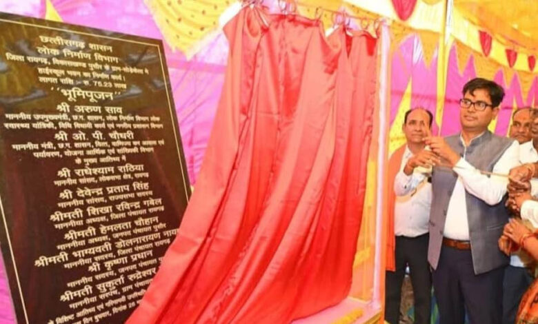 रायपुर : वित्त मंत्री ओ.पी.चौधरी ने 1.50 करोड़ की लागत से बनने वाले दो हाई स्कूल भवनों के निर्माण का किया भूमि पूजन