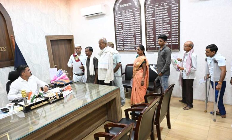 27 खोली निवासी श्री बिजेन्द्र कुमार सूर्यवंशी ने अपने दिव्यांग बच्चे का स्वामी आत्मानंद अंग्रजी माध्यम स्कूल में कक्षा यूकेजी में एडमिशन कराने कलेक्टर को आवेदन दिया। इस मामले को जिला शिक्षा अधिकारी देखेंगे। विकासखंड तखतपुर के ग्राम पंचायत कुरेली निवासी श्रीमती रामेश्वरी यादव द्वारा प्रधानमंत्री आवास योजना के तहत आवास दिलाने कलेक्टर को आवेदन दिया गया। इस मामले को जिला पंचायत सीईओ देखेंगे। मोपका निवासी श्री बिक्रम साय पैकरा द्वारा घर के नक्शा का नियमितिकरण कराने कलेक्टर को आवेदन दिया गया।