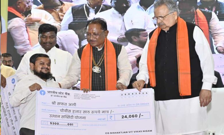 मुख्यमंत्री विष्णु देव साय राजधानी रायपुर के मेडिकल कॉलेज स्थित अटल बिहारी वाजपेयी सभागार में छत्तीसगढ़ निःशक्तजन वित्त एवं विकास निगम के नवनियुक्त अध्यक्ष के पदभार ग्रहण एवं अभिनंदन समारोह में शामिल हुए। उन्होंने छत्तीसगढ़ निःशक्तजन वित्त एवं विकास निगम के नवनियुक्त अध्यक्ष लोकेश कावड़िया को नए दायित्व के लिए बहुत-बहुत बधाई एवं शुभकामनाएं दीं। इस मौके पर मुख्यमंत्री साय ने छत्तीसगढ़ निःशक्तजन वित्त एवं विकास निगम का नाम परिवर्तित कर छत्तीसगढ़ दिव्यांग जन वित्त एवं विकास निगम करने की घोषणा की। साथ ही मुख्य मंच से इस अवसर पर 15 दिव्यांग हितग्राहियों को ऋण, 11 दिव्यांग हितग्राहियों को ऋण अदायगी करने पर ब्याज सब्सिडी एवं श्रवण बाधित दिव्यांग को श्रवण यंत्र प्रदान किया गया।