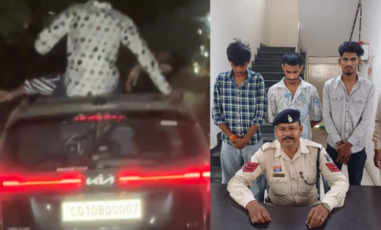 CG- चलती कार की छत पर स्टंटबाजी कर रहे थे तीन युवक…वीडियो हुआ वायरल, मोटर वाहन अधिनियम के तहत दर्ज हुआ मामला, पुलिस ने ठोका भारी भरकम जुर्माना…