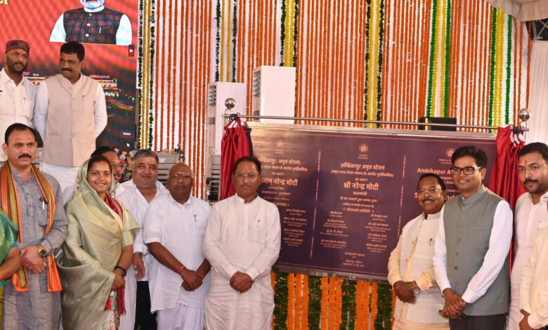 रायपुर: प्रधानमंत्री श्री नरेंद्र मोदी ने आज वर्चुअल माध्यम से अमृत भारत स्टेशन योजना के अंतर्गत छत्तीसगढ़ के पांच अमृत स्टेशन सहित देशभर के 103 पुनर्विकसित रेलवे स्टेशनों का उद्घाटन किया। इन स्टेशनों का उन्नयन यात्रियों को विश्वस्तरीय सुविधाएं उपलब्ध कराने के उद्देश्य से किया गया है। इस महत्वपूर्ण अवसर पर छत्तीसगढ़ के मुख्यमंत्री श्री विष्णुदेव साय अम्बिकापुर रेलवे स्टेशन में आयोजित उद्घाटन कार्यक्रम में शामिल हुए।