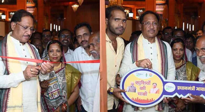 मुख्यमंत्री ने दोकड़ा में पीएम आवास योजना के हितग्राही संतु चक्रेस को चाबी देकर गृह प्रवेश कराया