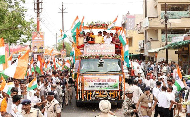 तिरंगा यात्रा में मुख्यमंत्री डॉ. यादव तिरंगे फूलों से सजाए गए विशेष रथ में सवार थे। उन्होंने इस दौरान हाथ हिलाकर नागरिकों का अभिवादन किया। तिरंगा यात्रा के दौरान पूरा शहर राष्ट्रभक्ति से ओत-प्रोत हो गया और आसमान “भारत माता की जय” और “वंदे-मातरम्” के उद्घोष से गुंजायमान हुआ। यात्रा में लोक निर्माण मंत्री एवं नर्मदापुरम जिले के प्रभारी मंत्री श्री राकेश सिंह, क्षेत्रीय सांसद श्री दर्शन सिंह चौधरी, राज्यसभा सांसद श्रीमती माया नारोलिया, सिवनी मालवा विधायक श्री प्रेम शंकर वर्मा सहित अन्य जनप्रतिनिधि भी शामिल हुए।