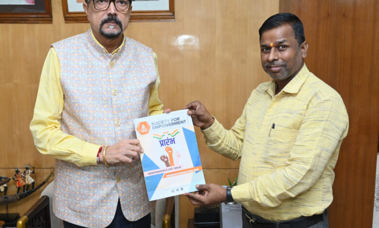 रायपुर: राज्यपाल श्री रमेन डेका को आज राजभवन में ‘‘सोसाइटी फॉर एम्पावरमेंट‘‘ द्वारा प्रकाशित मासिक पत्रिका ‘‘प्रारंभ‘‘ की प्रति भेंट की गई। विशेष पिछड़ी जनजातियों पर केंद्रित इस विशेषांक का संपादन मानवविज्ञानी एवं राज्यपाल के उप सचिव डॉ. रूपेन्द्र कवि द्वारा किया गया है।