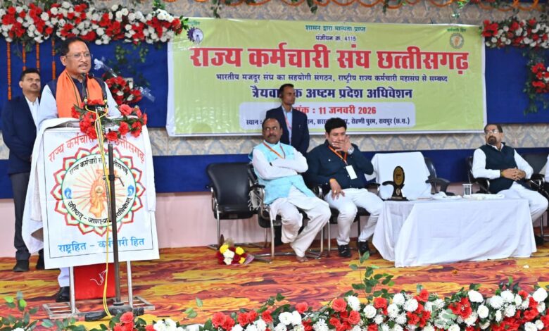 रायपुर: कर्मचारी शासन-प्रशासन की रीढ़ होते हैं और उनकी ईमानदारी, कर्मठता तथा संवेदनशीलता से ही सरकार की योजनाएं, नीतियां और निर्णय वास्तविक रूप में धरातल पर उतरते हैं। छत्तीसगढ़ का प्रशासनिक ढांचा आप सभी की मेहनत, निष्ठा और अनुशासन के कारण ही प्रभावी ढंग से कार्य कर पा रहा है। मुख्यमंत्री श्री विष्णु देव साय ने राजधानी रायपुर के रोहिणीपुरम स्थित सरस्वती शिक्षा संस्थान परिसर में राज्य कर्मचारी संघ, छत्तीसगढ़ द्वारा आयोजित त्रैवार्षिक अष्टम प्रदेश अधिवेशन को संबोधित करते हुए यह बात कही।