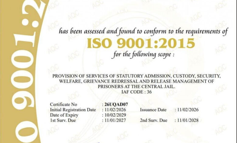 रायपुर: छत्तीसगढ़ की जेल व्यवस्थाओं में गुणवत्ता, पारदर्शिता और जवाबदेही को सुदृढ़ करने की दिशा में एक महत्वपूर्ण उपलब्धि हासिल हुई है। उप मुख्यमंत्री एवं जेल विभाग के प्रभारी मंत्री विजय शर्मा के निर्देशन में राज्य की जेलों की व्यवस्थाओं को बेहतर बनाने के लिए लगातार प्रयास किए जा रहे है। इन्हीं प्रयासों का ही यह परिणाम है कि छत्तीसगढ़ की सेंट्रल जेल रायपुर, दुर्ग, बिलासपुर एवं अम्बिकापुर को अंतरराष्ट्रीय गुणवत्ता मानक आईएसओ 9001ः2015 का प्रमाणन प्राप्त हुआ है।