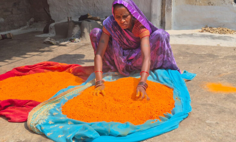 रायपुर: छत्तीसगढ़ राज्य ग्रामीण आजीविका मिशन बिहान से जुड़ी कबीरधाम ज़िले की महिला स्व-सहायता समूह महिला सशक्तीकरण की दिशा में आगे बढ़ रही है। जनपद पंचायत बोडला के ग्राम राजा नवागांव की जय गंगा मैया स्व-सहायता समूह से जुड़ी दीदियों ने रंगोत्सव त्योहार होली के लिए हर्बल गुलाल का निर्माण किया है। महिला समूह ने हर्बल गुलाल के व्यवसाय से जुड़कर आजीविका के नए रास्ते खोले है। इस गतिविधि में 10 महिलाओं की प्रत्यक्ष भागीदारी है, जो उनके आय का अच्छा स्रोत है। लाल, गुलाबी, पीले सहित अन्य रंगों और प्रकृति खुशबू से भरपूर हर्बल गुलाल बाजार में आने के लिए उपलब्ध है।